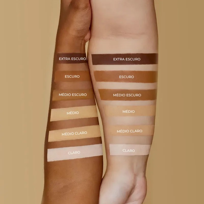 - Tom Médio Escuro 4: Perfeito para peles médias a escuras, proporcionando um acabamento natural e uniforme.